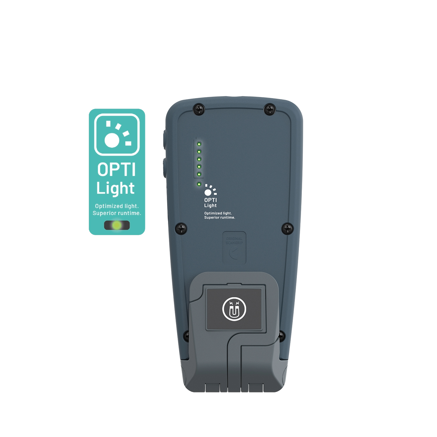 Die OPTILight-Einstellung sorgt dafür, dass Sie Licht und Laufzeit mit einem einfachen Druck optimieren und die erforderliche Beleuchtungsstärke (LUX) für eine typische Arbeitssituation liefern können. Diese Arbeitsleuchte bietet eine konstante Lumenleistung, gemessen nach der europäischen Norm EN 13032-1.